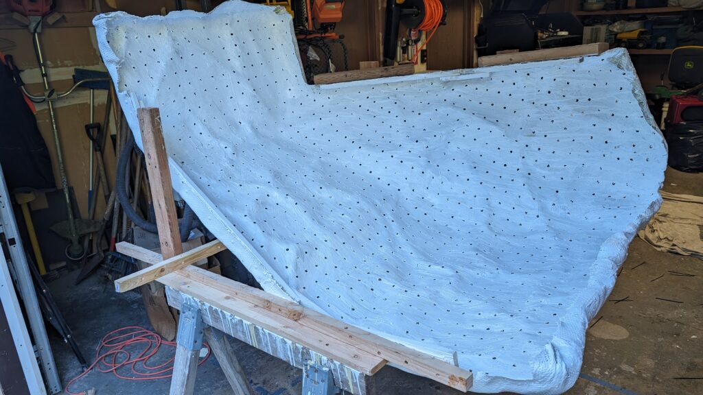 Shell piece mounted on a temporary frame, all the holes drilled and reamed